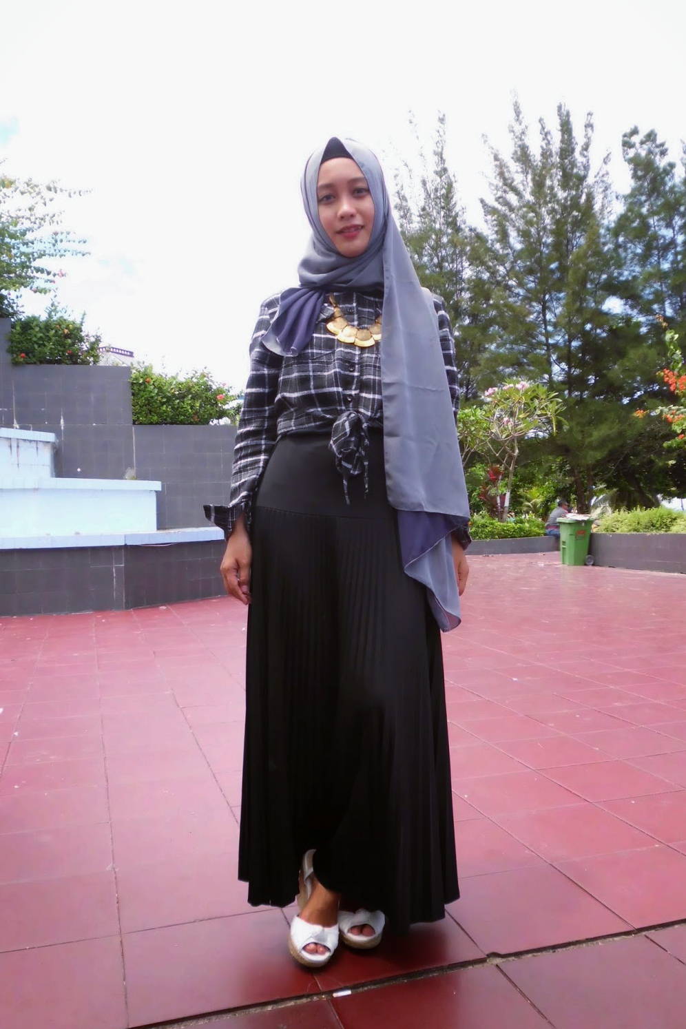 #1. Padupada Kemeja Flannel yang Maskulin dapat dipadukan dengan Maxy Skirt Hitam yang manis biar aksen feminin juga dapat.